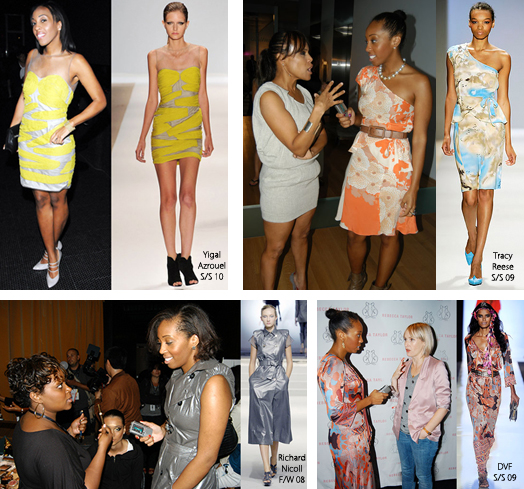Top left to right: Qianna Smith pictured in Yigal Azrouel while attending supermodel Iman’s 2010 CFDA award